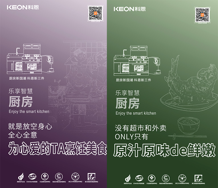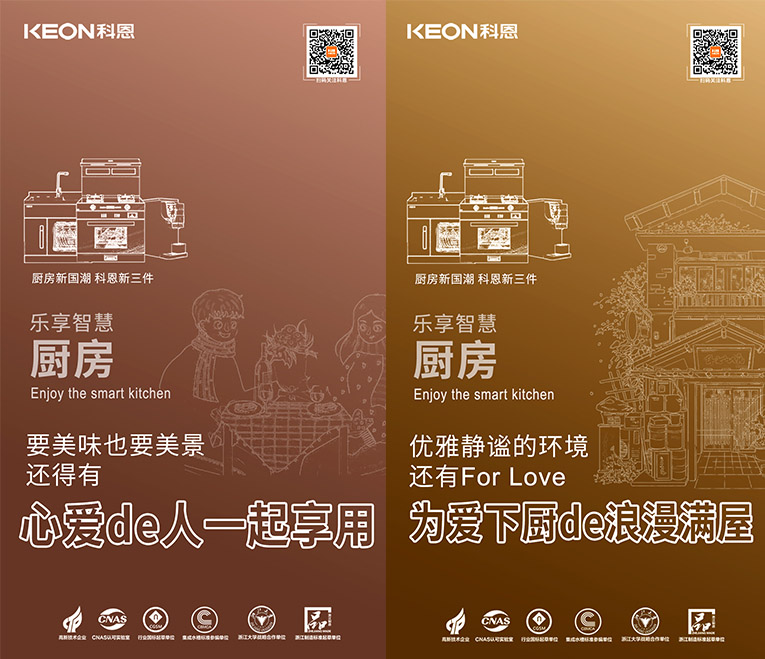 國潮正當時,隨著國貨的崛起,消費者更加開始關注高端新國貨!科恩集成灶為千萬家庭打造樂享智慧廚房空間,創新設計、高端品質、優良服務、優質體驗贏得了用戶的高度認可。順應“國潮”趨勢,提煉“新國貨新潮牌”理念,結合“廚房新國潮,科恩新三件”,以滿足現代年輕群體對國貨的審美與品質認知,以匠心科技實現現代廚房功能需求。