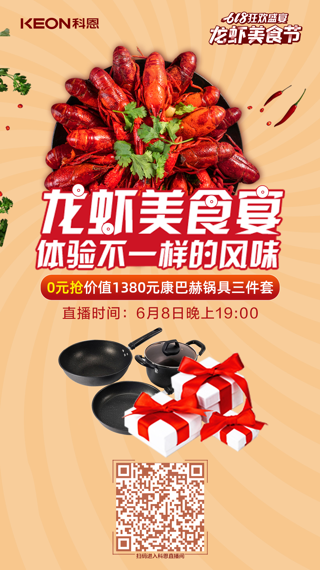 TA來了!TA來了!TA來了!618狂歡盛宴科恩龍蝦美食節(jié)——龍蝦美食宴線上直播終于來了,TA帶著傳統和創(chuàng)新的美味來了,TA帶著誠意滿滿的福利來了,6月8日19點,來科恩直播間,我家的科粉,我來寵?。?!