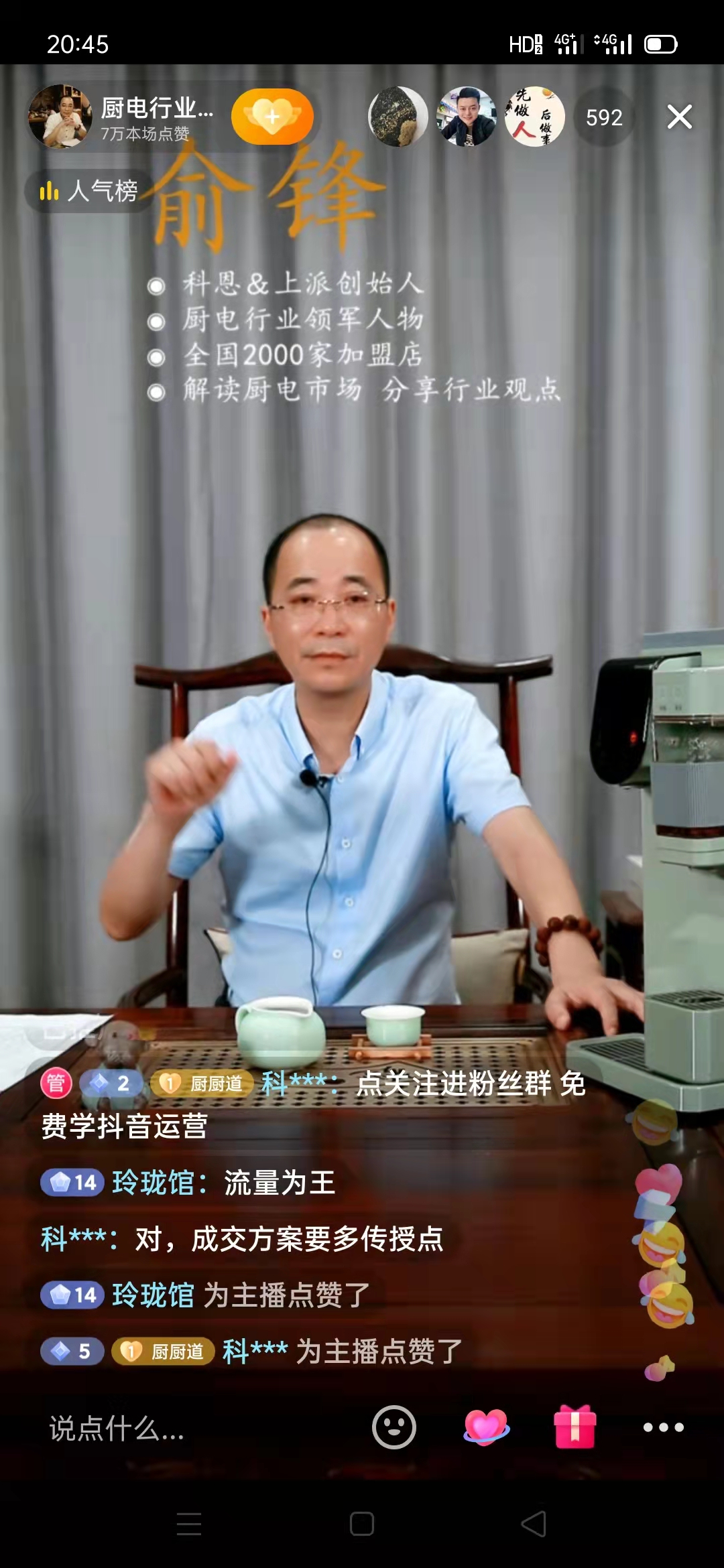 直播從19:30準時開始,俞總在大家的萬眾期待中閃耀亮相,集團董事、廚電大咖效應使得眾多業(yè)內外精英及投資創(chuàng)業(yè)者紛紛進入直播間聆聽取經,同時,豐富的直播福利和俞總娓娓道來、由淺入深的商業(yè)思維也提升了大眾的參與度,引起了用戶對于目前經濟形勢的廣泛關注和討論,可以說,這是一場具有戰(zhàn)略性、前瞻性、針對性的行業(yè)直播盛宴。