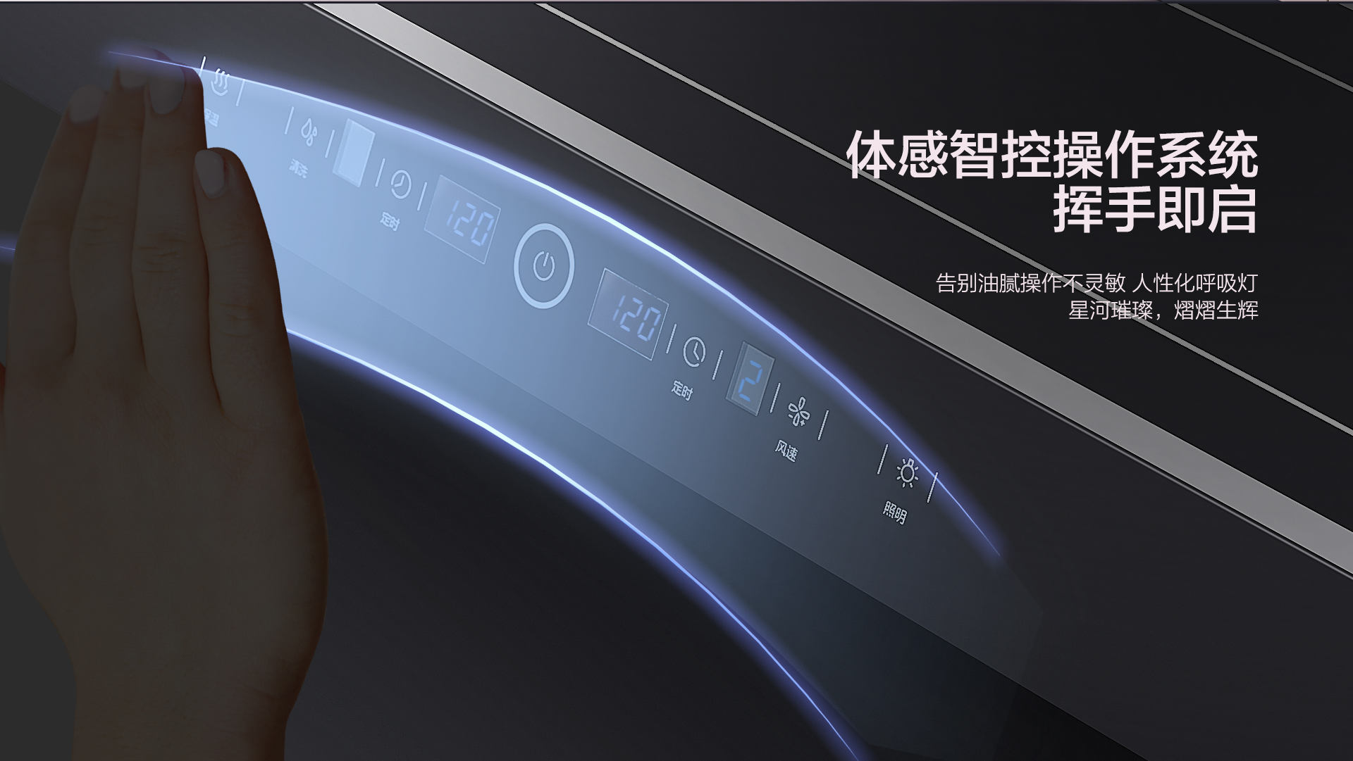 ◆體感智控操作系統,揮手即啟,解放雙手,告別油膩和操作不靈敏等情況,面板時刻保持干凈整潔,下廚無需手忙腳亂找按鍵!