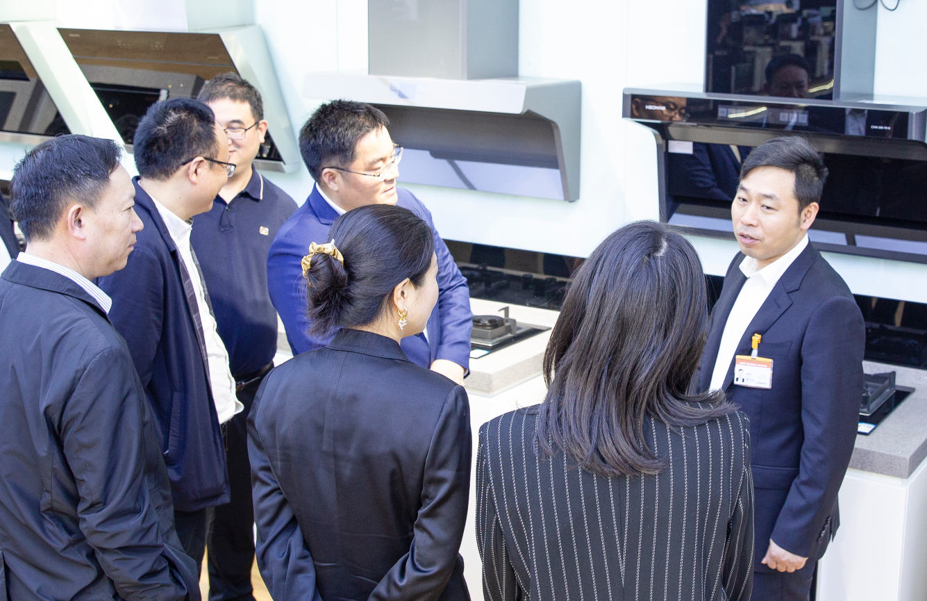 在科恩展廳,裘主席一行觀看了科恩全系產品——科恩集成灶、集成水槽、油煙機、灶具、凈水器等。裘主席一行對科恩公司多年來始終堅持創新,研發廚電產品,帶動廚電行業蓬勃發展,并給傳統廚房行業帶來嶄新的理念,給予高度評價。