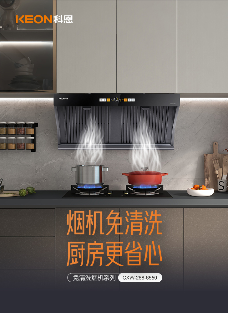科恩6530免清洗煙機的面世,給無數用戶帶去了全新的廚房生活理念。不用清洗的油煙機,讓人們真正體驗到了便利的廚房生活。也因此6530可謂是火爆全網,暢銷全國!科恩隨即研發(fā)了6530姊妹款6550!