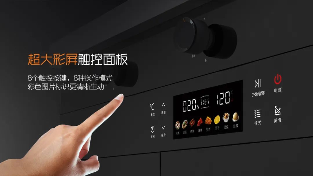 八大操控模式:超大彩屏觸控面板,8個觸控按鍵,8種操作模式,彩色圖片標識更清晰生動。