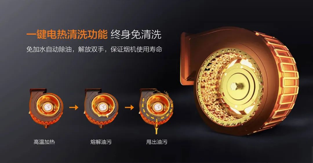 科恩免清洗煙機標配智旋洗,高溫電加熱,有效熔化風柜內壁和葉輪上的部分油垢,再通過風輪的離心力將油污甩到室外和過濾到油杯,從而完成清洗全過程,但即使這樣也無法解決風輪長年累月因油脂油污附著負荷工作而造成的吸力下降,吸煙效果變差,清洗打理困難,甚至煙機抖動和安全等諸多問題......