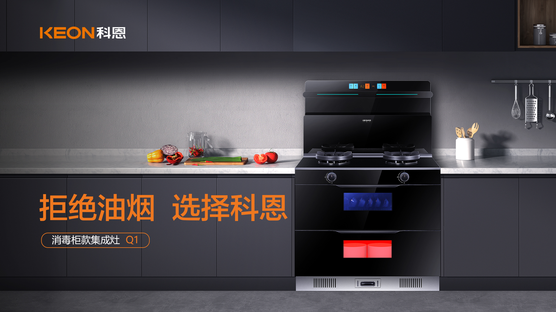 對于新一代掌廚人來說,廚房電器承擔(dān)的可不僅僅是烹飪功能,更應(yīng)該撐起廚房的顏值門面擔(dān)當(dāng)。科恩Q1經(jīng)典消毒款集成灶以時尚的外觀區(qū)別于其他集成灶!