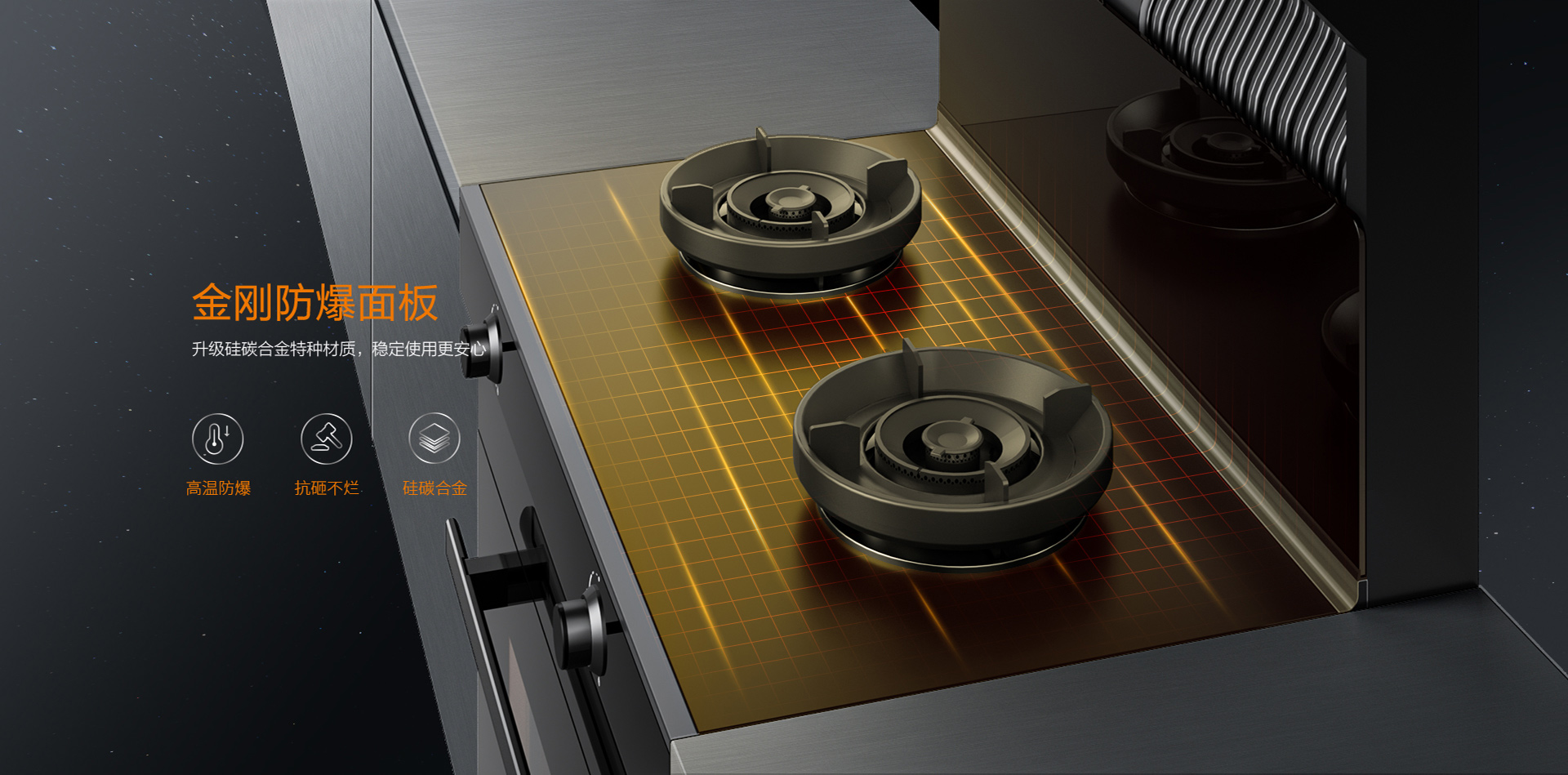 防爆金剛板解決廚房安全隱患!硅碳合金特種材質(zhì)可耐高溫1500℃,高于國標(biāo)3倍以上,更安全!