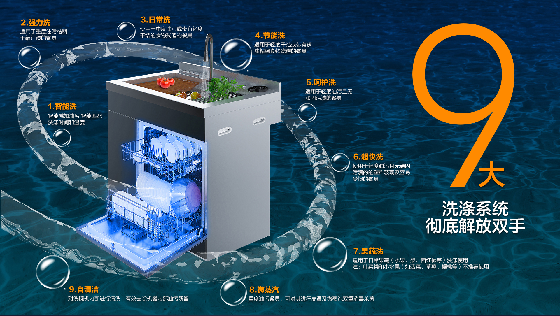 9大定制洗滌系統(tǒng),讓碗筷清洗更智慧。同時,還貼心設(shè)置清洗蔬果,告別蔬果農(nóng)殘。
