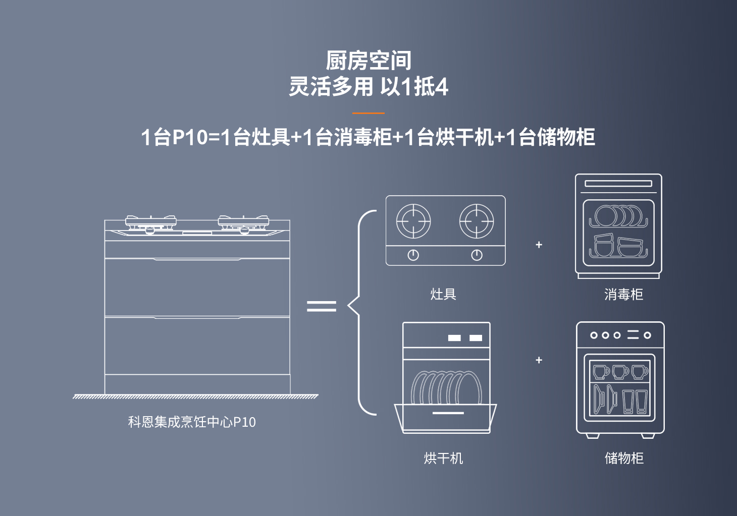 空間革命,小戶救星。告別傳統(tǒng)廚房束縛,解決刻板安裝限制。科恩新品集成烹飪中心p10,0.5個立方,化繁為簡。空間釋放,不占櫥柜空間;主柜清爽,不積油免清洗,上烹下凈,立體空間全能集成。