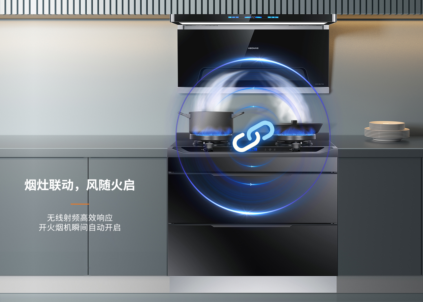 煙灶聯(lián)動,凈煙無憂。免除手忙腳亂操控,科恩集成烹飪中心,煙灶智控互聯(lián),開火即排煙。5.2KW藍(lán)焰猛火系統(tǒng),實現(xiàn)快速升溫,煎炒炸烙樣樣拿手,廚房小白也能變身中華小當(dāng)家。