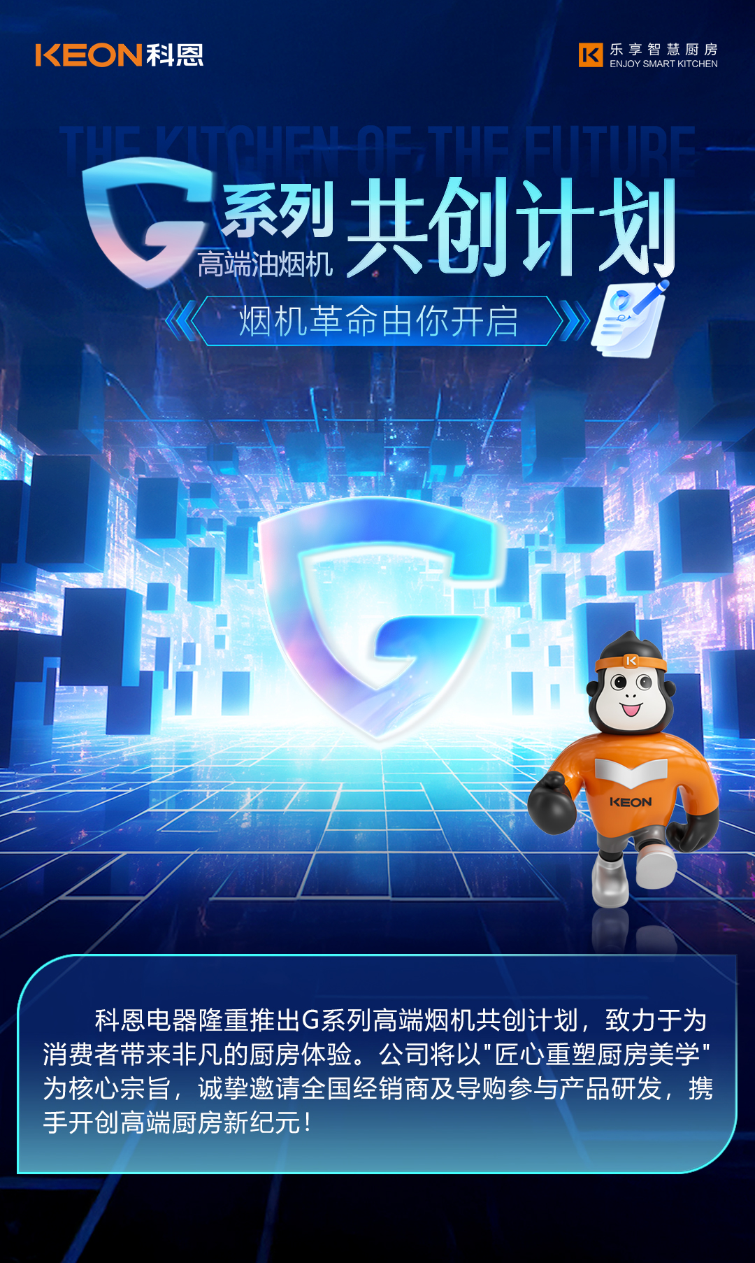 廚房,是家的心臟,承載著無數(shù)溫暖與美味。科恩以用戶視角為核心,為打造極致廚房體驗(yàn),正式啟動(dòng)2025 G系列高端油煙機(jī)合作伙伴共創(chuàng)計(jì)劃。公司將秉持“以匠心重塑廚房美學(xué)”的產(chǎn)品理念,誠(chéng)邀科恩全國(guó)經(jīng)銷商、導(dǎo)購、售后參與產(chǎn)品研發(fā),開啟金點(diǎn)子征集行動(dòng),共同攜手,開創(chuàng)高端廚房新紀(jì)元!