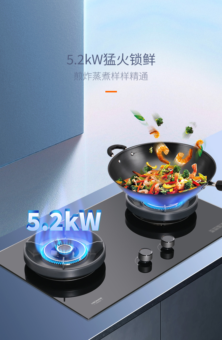 舊灶換新生,廚房有新意。臺嵌兩用,換新優選。可調節底盤設計,換灶零門檻,不擴孔不改孔,老廚房無縫升級。科恩KN530灶具即將來襲,安裝無拘束,安全常在線,解鎖烹飪新體驗。黑晶美學,廚房新名片。黑晶鋼化玻璃面板,輕奢大氣,抗爆耐刮,防滑旋鈕拒絕燙手尷尬,采用鋁合金爐頭,防生銹耐腐蝕,讓灶臺變身藝術品展覽區。5.2KW猛火是爆炒的底氣,激發食材本味,享受大廚風味。0°-170° 的寬域控火藏著細膩,收放自如,多種烹飪模式輕松應對。多重凈燃科技,高效倍省氣,KN530灶具,點燃你的烹飪熱情。