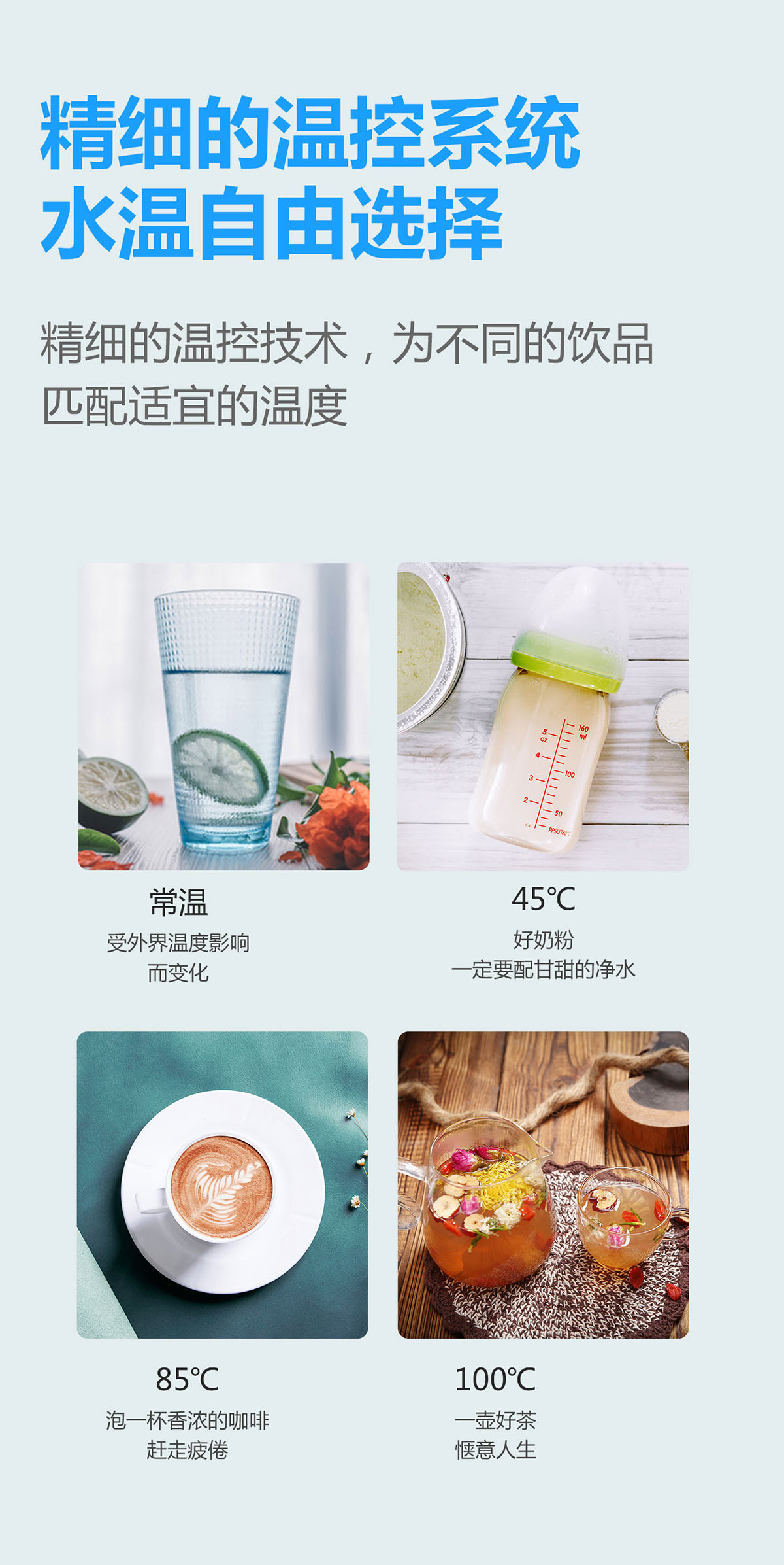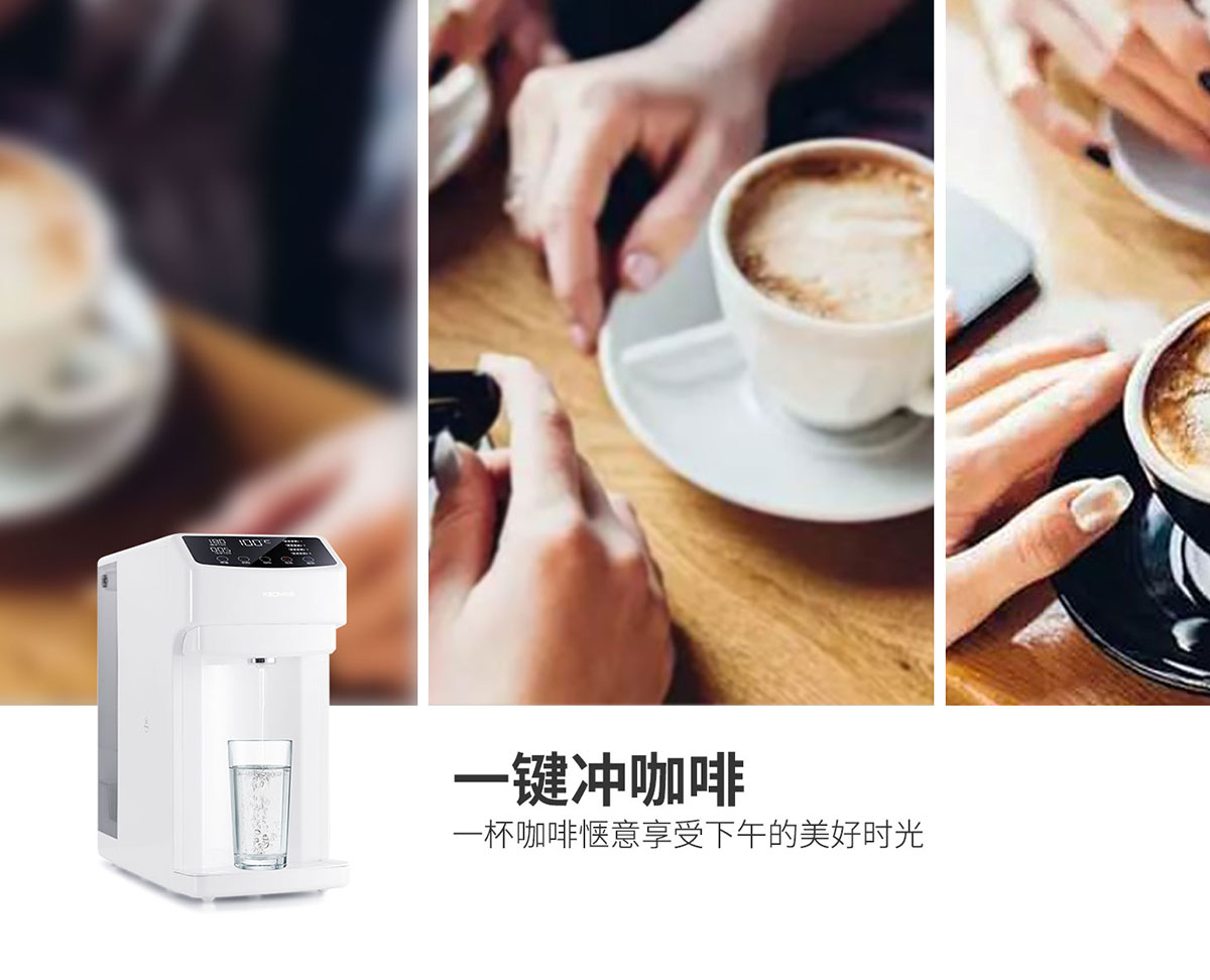 - 3秒速熱,4檔溫控(常溫、泡奶、沖咖啡、泡茶),一鍵操作,方便快捷