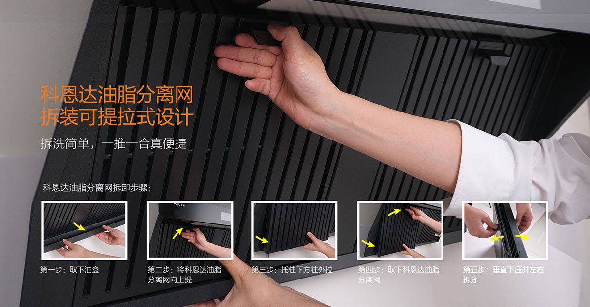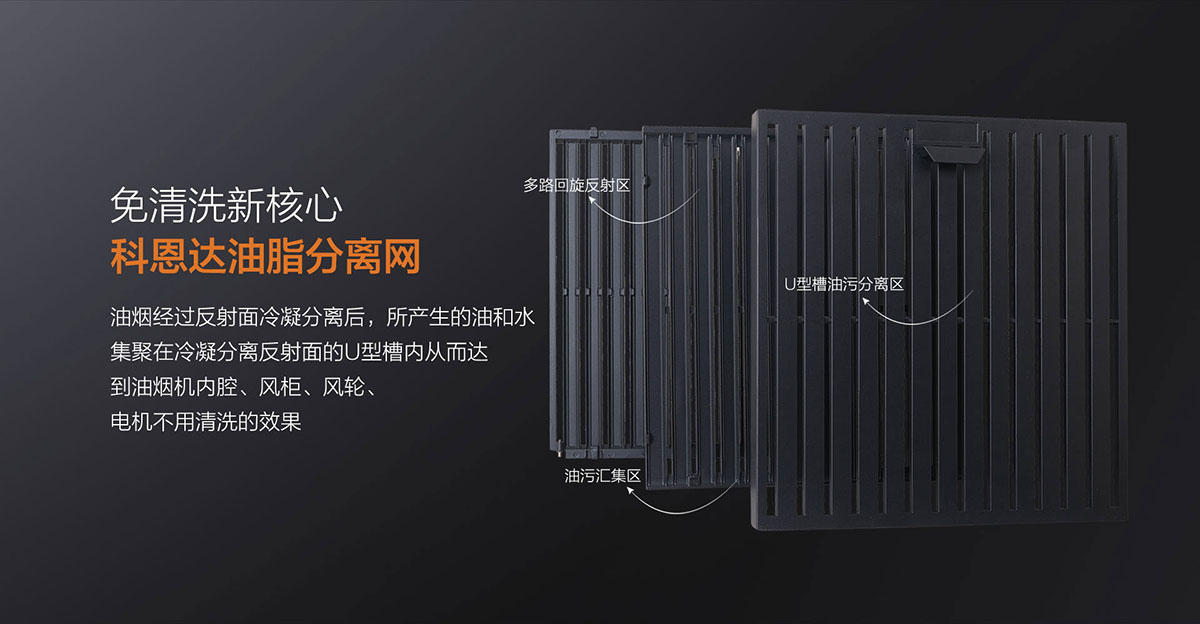 科恩達油脂分離網便捷拆裝設計,表面易潔工藝,拆洗簡單
