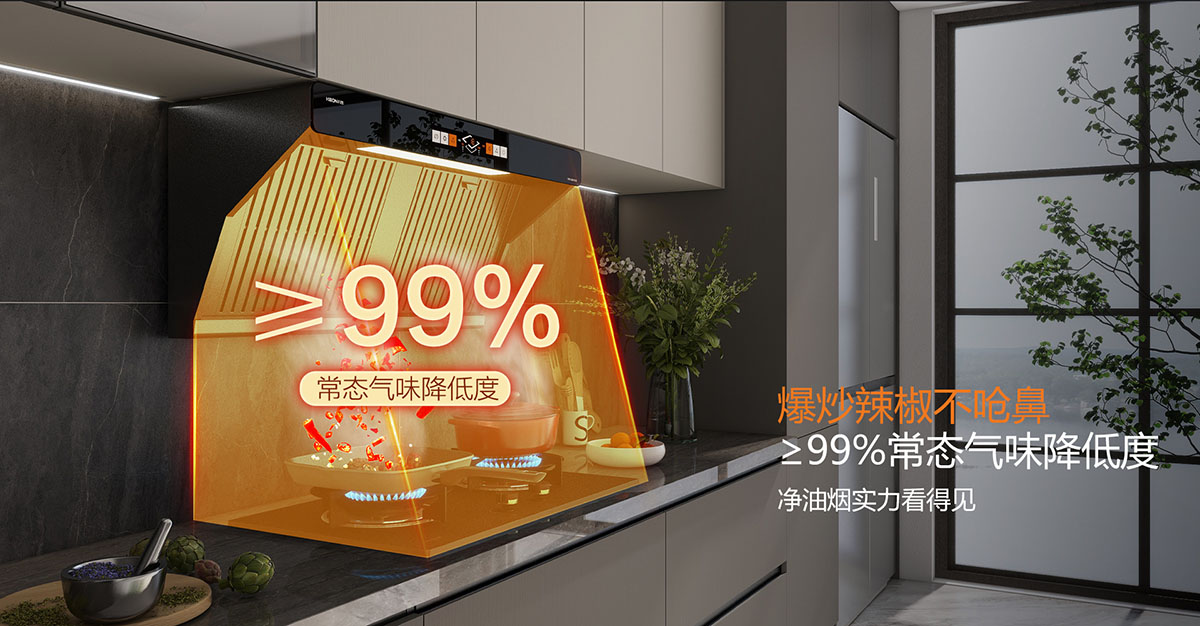 颶風大吸力,≥99%常態氣味降低度,爆炒辣椒不嗆鼻