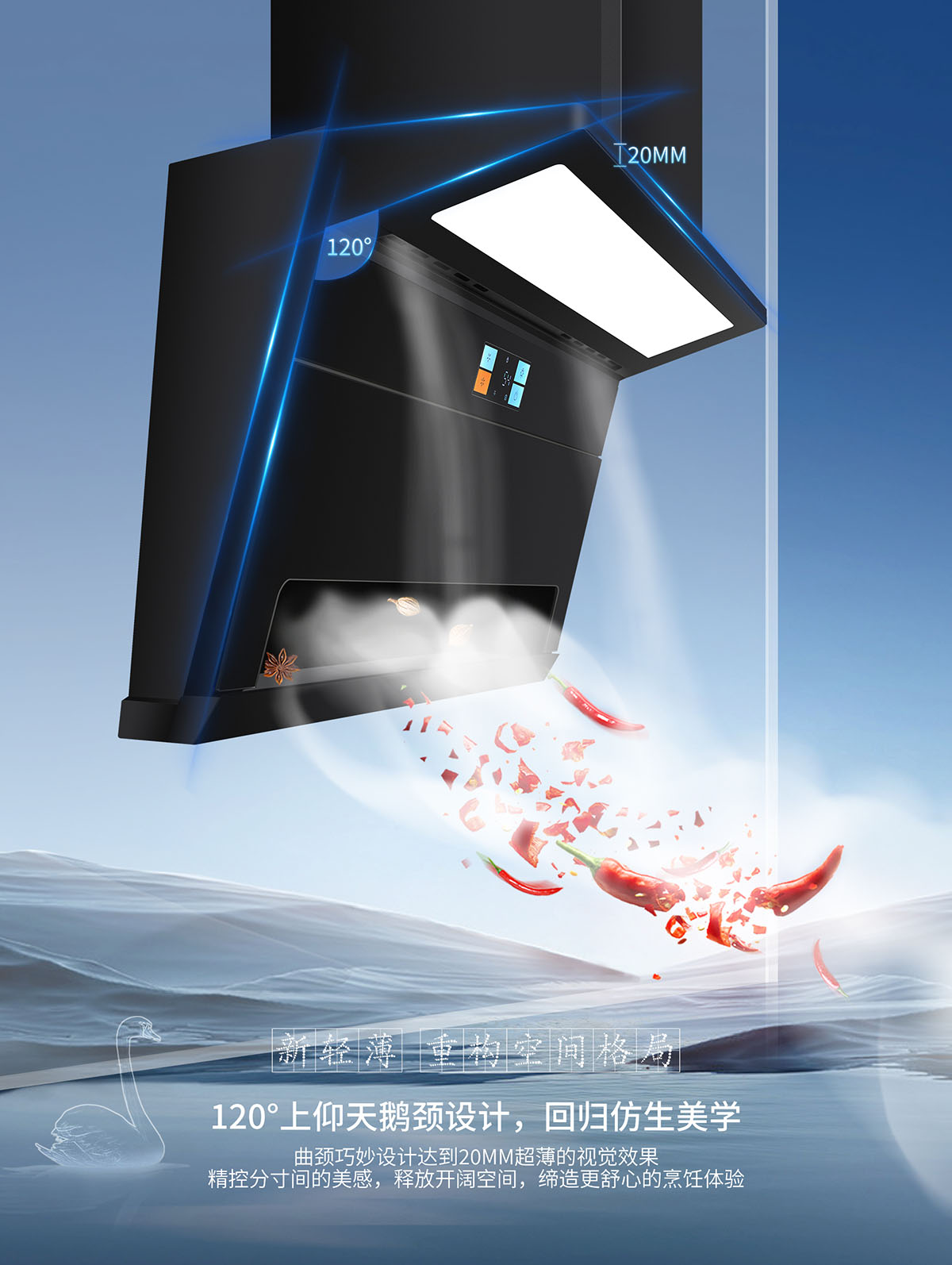 磁吸上翻式科恩達導煙板,減震防撞,清潔更便捷
