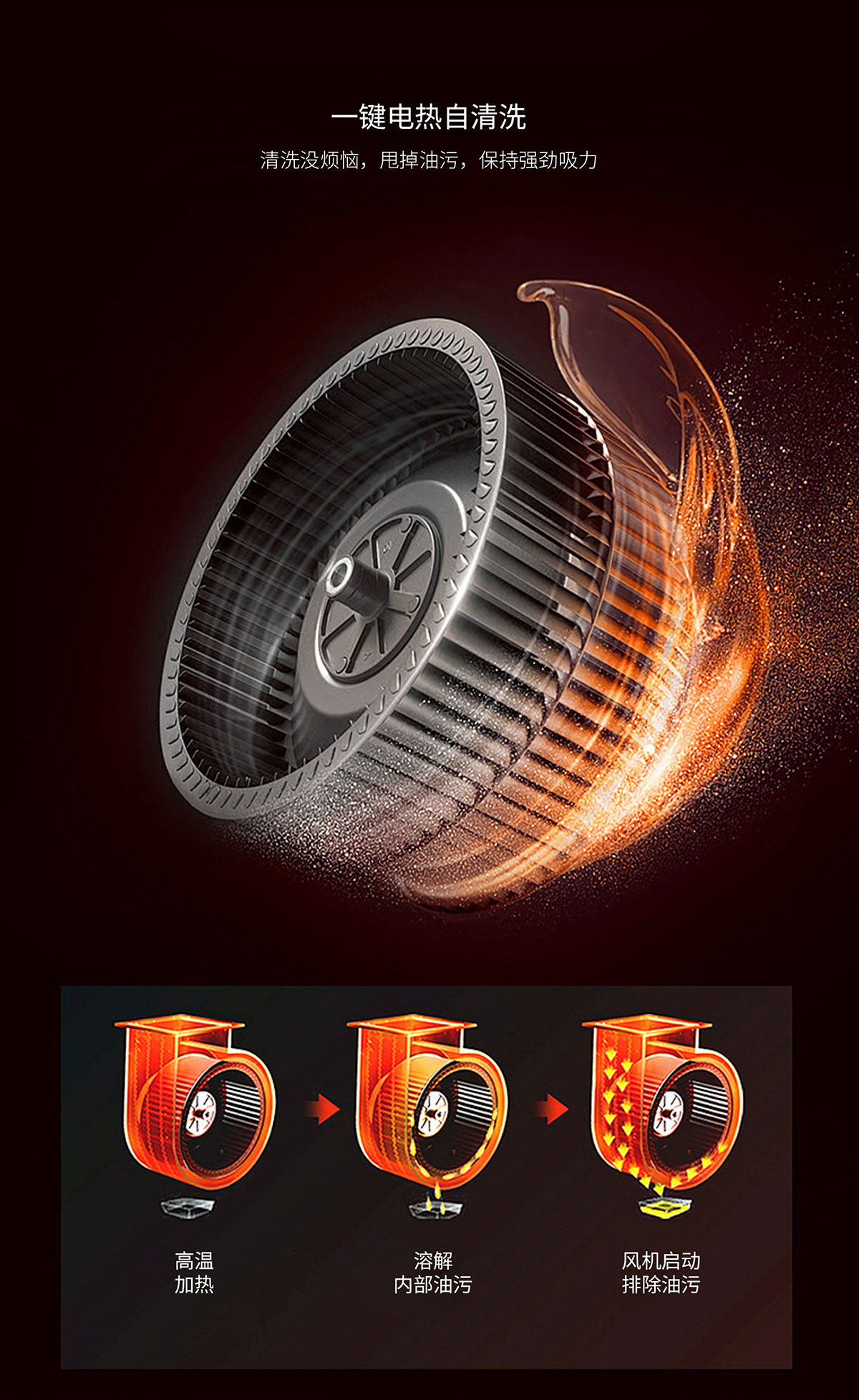 電熱自清洗,甩掉油污,保持強勁吸力