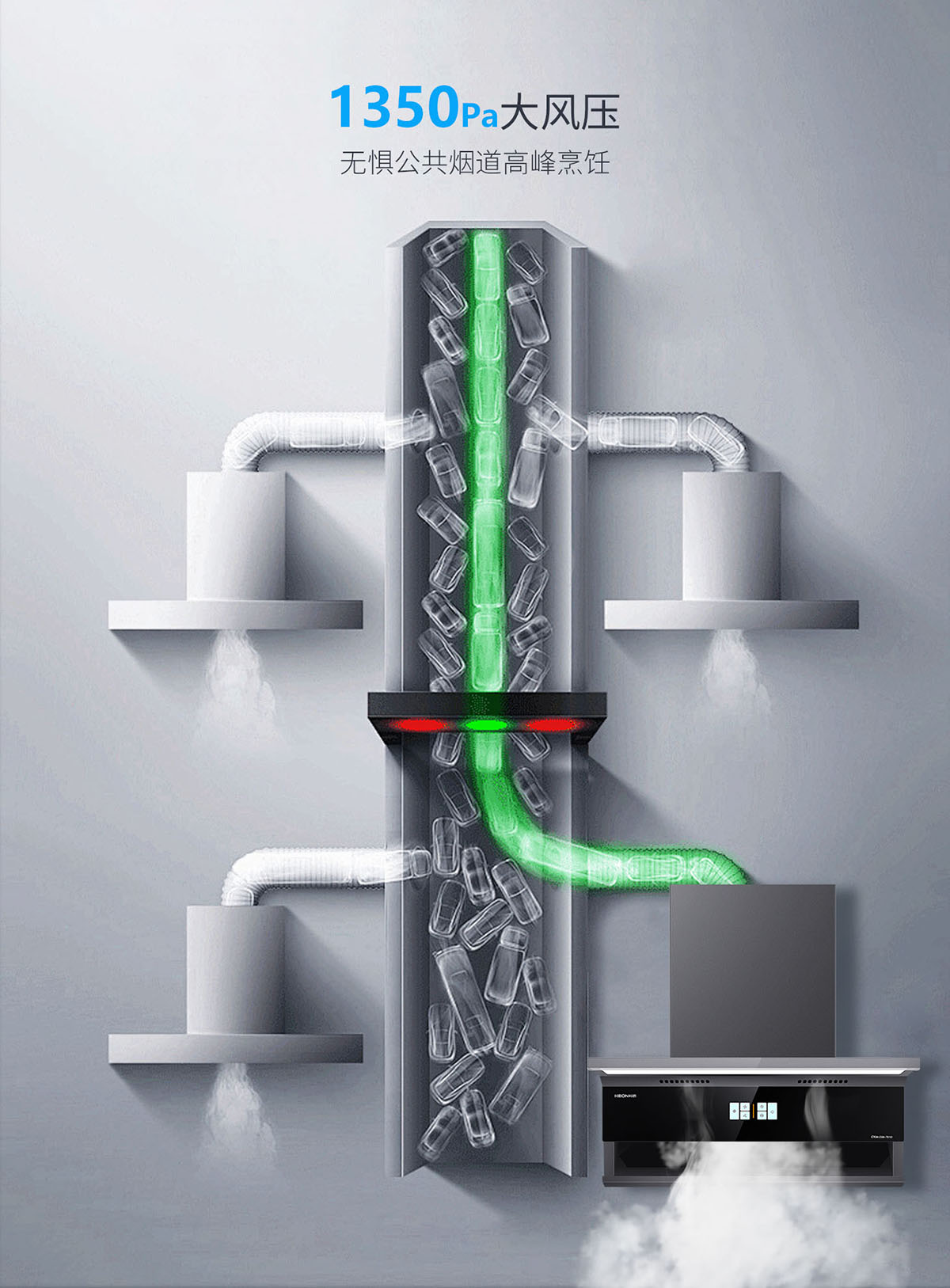 1350Pa大風(fēng)壓,無(wú)懼公共煙道高峰烹飪