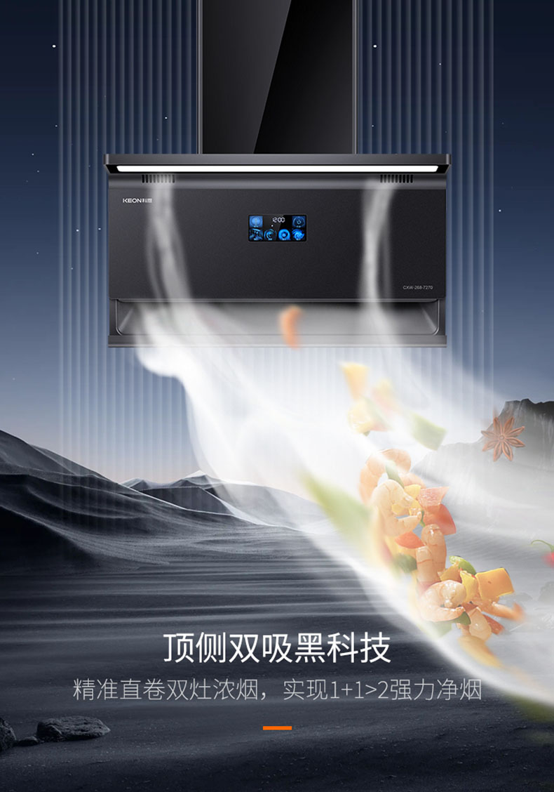 頂側(cè)雙吸,精準直卷雙灶濃煙