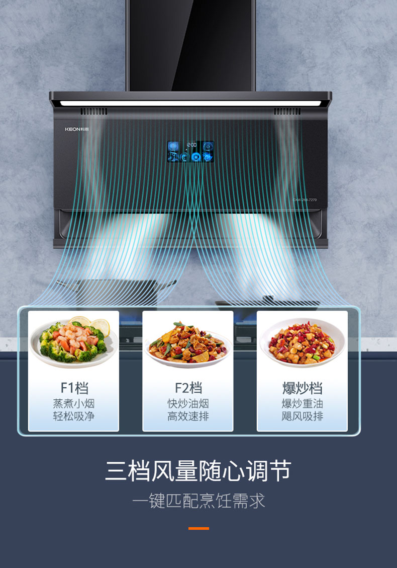 三檔風量隨心調(diào)節(jié),一鍵匹配烹飪需求 。