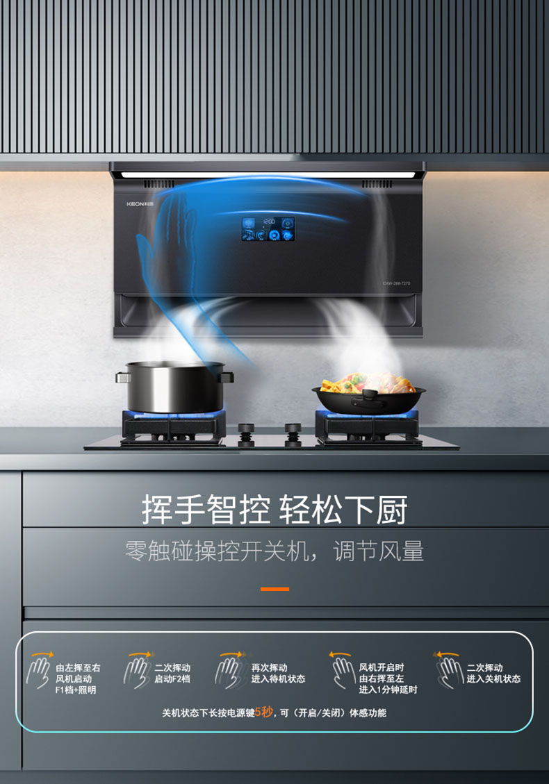 揮手智控,零觸碰操控開關機,調(diào)節(jié)風量